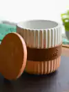 Pote Canelado M com Tampa e Vela Aromática